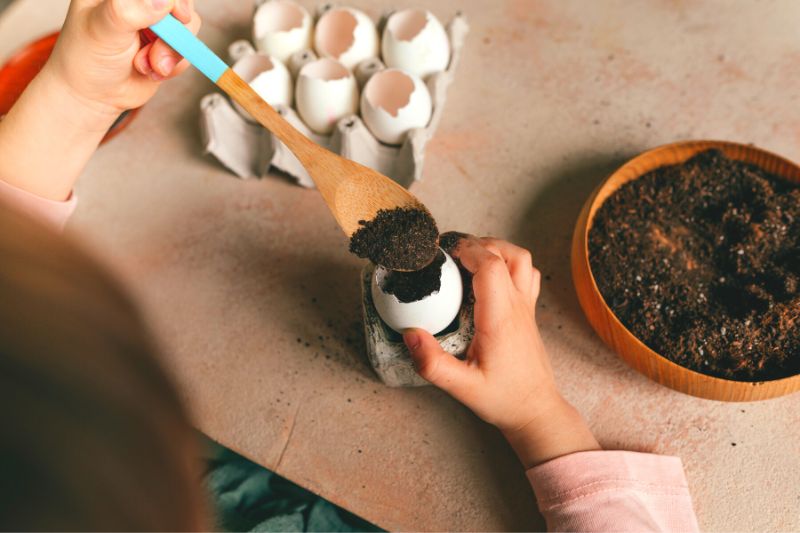 - Une cuillère pour mettre le terreau dans les coquilles.