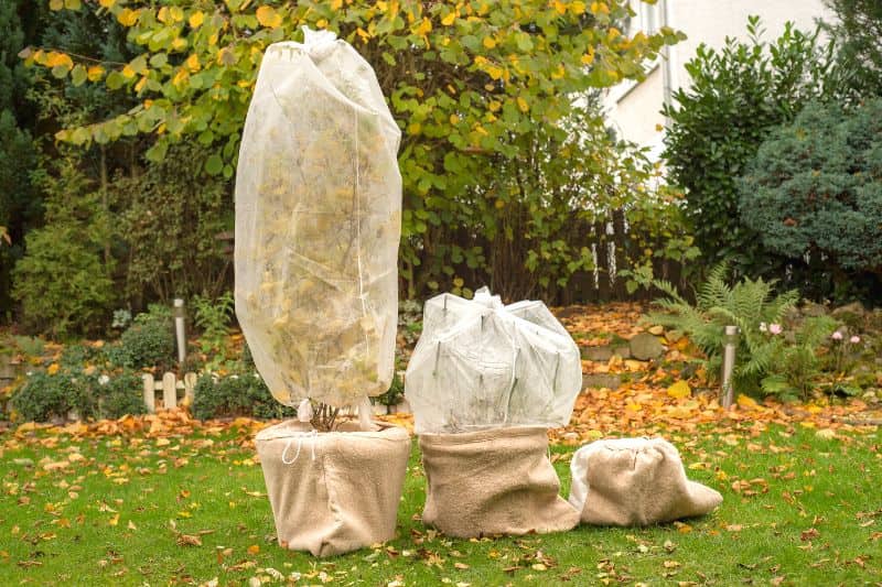 Installer un voile d'hivernage sur une plante en pot
