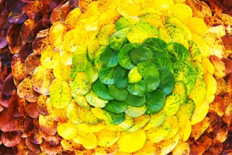 Mandala de feuilles réalisé par un enfant de 7 ans