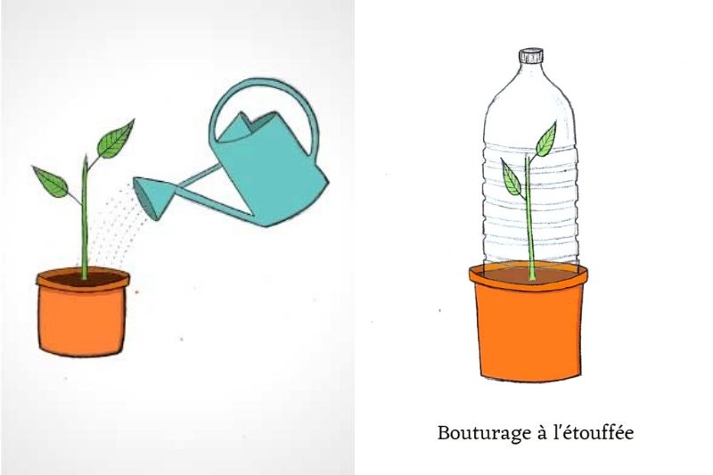 - Attention, la tige et le feuillage ne doivent pas être en contact avec la cloche pour éviter la moisissure ! Placez votre bouture en situation lumineuse et ombragée. Évitez une place trop ensoleillée ou en plein soleil ;