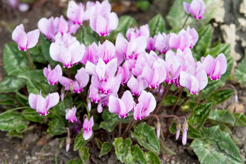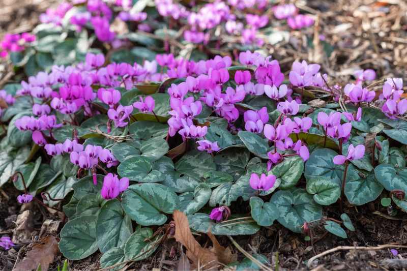 Le cyclamen est une magnifique fleur, de la famille des Primulacées, qui fleurit en automne (Cyclamen de Naples) ou en hiver (Cyclamen coum), prisée pour sa beauté et la variété de ses couleurs, du blanc au violet, en passant par le rose. Le feuillage de ce petit couvre-sol peut aussi être décoratif en arborant parfois des petits motifs gris-argenté : il disparait cependant en été, mais reste présent en hiver. Le tout formant un tapis charmant et coloré durant de longs mois, surtout si on a pris soin de planter différentes espèces dont les floraisons se succèderont. La plantation du cyclamen peut se faire en pot ou en pleine terre, mais toujours à la mi-ombre, voire à l'ombre au pied des arbres, dans un sous-bois.