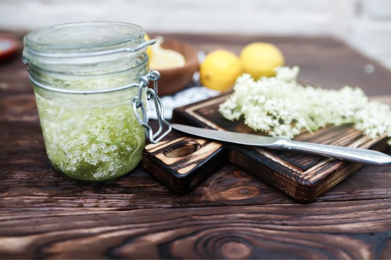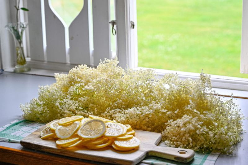 La préparation de la limonade de fleurs de sureau