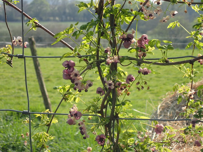 L’Akebia est une grimpante volubile pas si fréquemment utilisée dans les jardins, et pourtant quel ravissement de voir cette liane dévoiler ses charmantes petites fleurs violacées au mois d’avril. Il fait partie des premières plantes grimpantes à fleurir avec les clématites de printemps, mais lui s’adapte très bien aux zones mi-ombragées. Originaire de Chine, il existe plusieurs espèces chez l’Akebia, le très classique Akebia quinata, aux fleurs pourpre, que l’on rencontre souvent, dont sont issues de très belles variétés bicolores, et certains hybrides, comme l’Akebia pentaphylla.