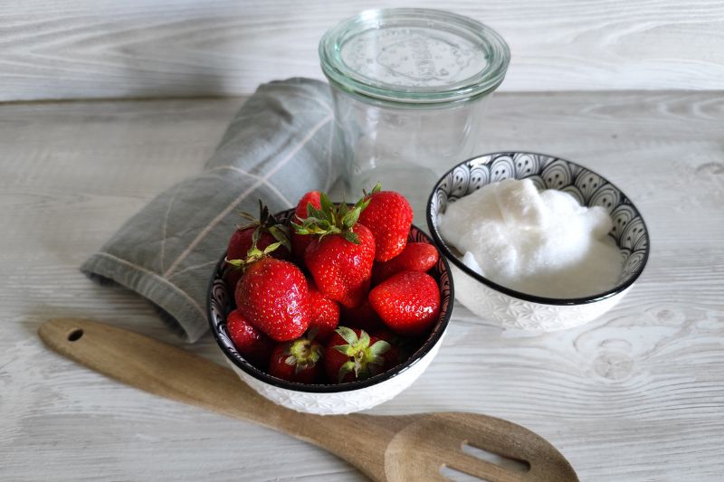 Pour bien réussir la fermentation du koso de fraises, on s’appuie sur la flore naturellement présente sur les fruits. Pour cette recette, utilisez des fraises non traitées, idéalement du jardin, et évitez de les laver à grande eau, afin de faciliter la fermentation.