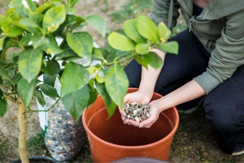 - Placez au fond du pot un lit de billes d'argile ou de gravier ;