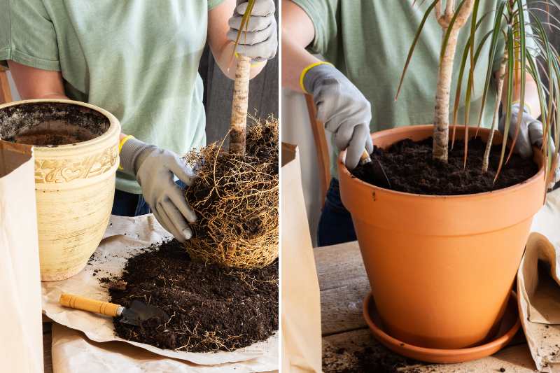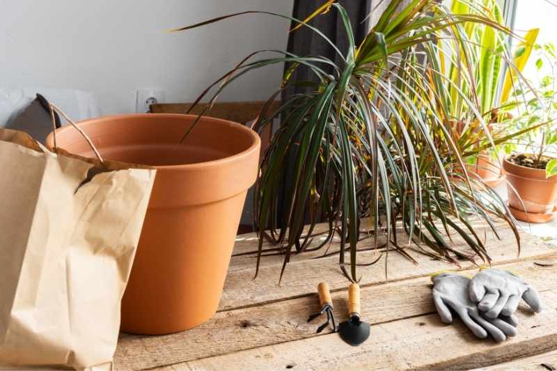 Le terreau pour le rempotage du Dracaena doit être bien drainant, car cette plante n’aime pas avoir les racines dans l’eau. Le substrat est constitué d'un mélange de terreau spécial plantes d'intérieur avec du sable grossier, de la perlite ou de la fibre de coco pour améliorer le drainage. Évidemment, il faut choisir un terreau neuf, riche en nutriments, qui ne doit pas avoir séché.
