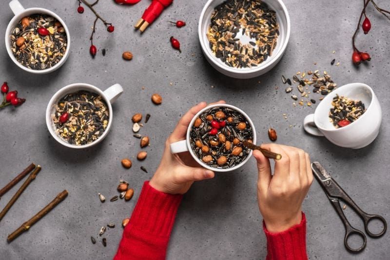 - Un mélange de graines pour oiseaux et des petites baies