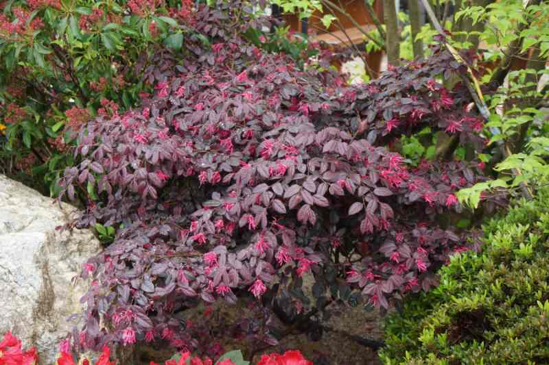 De pousse plutôt lente, les Loropetalum restent plus ou moins compacts selon la variété (ici un jeune Loropetalum chinense)