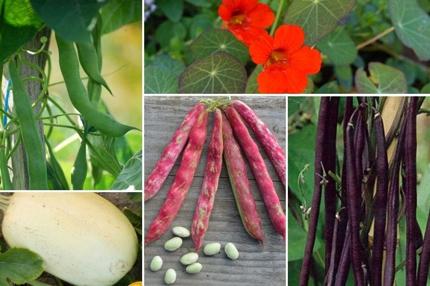 Haricots à rames, capucine et courges sont de bons grimpants !